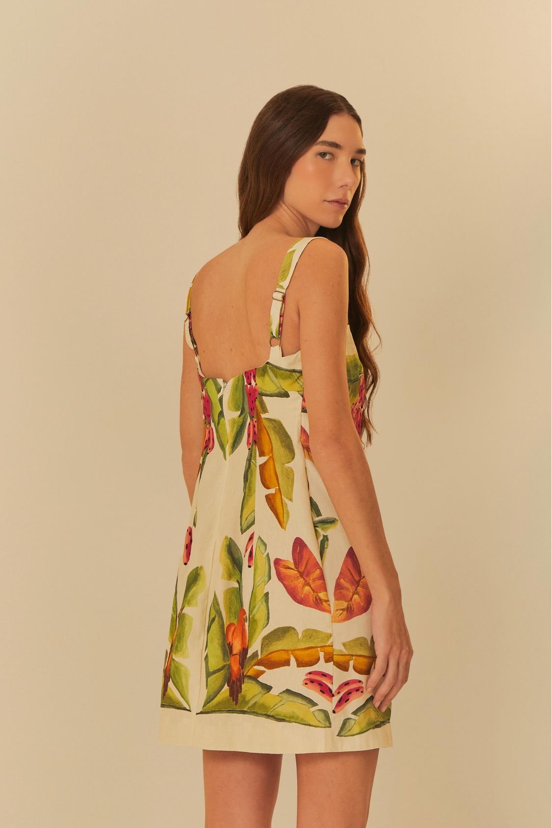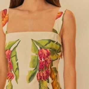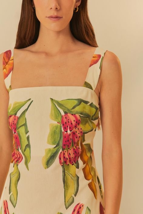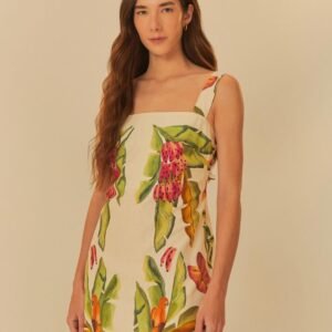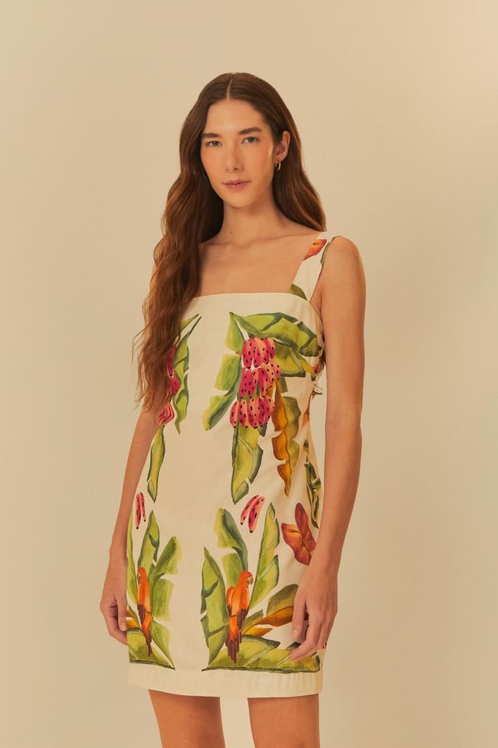 vestido curto estampado lenço folhagem de verão