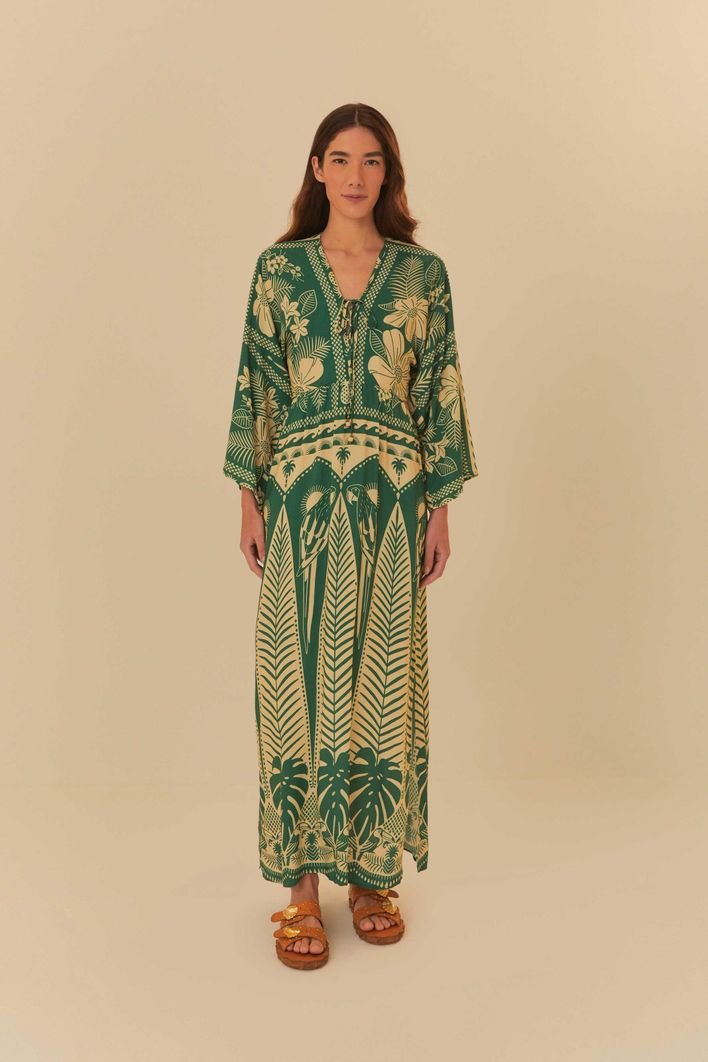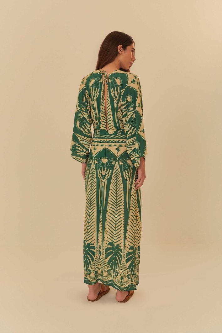 vestido longo estampado noite das araras